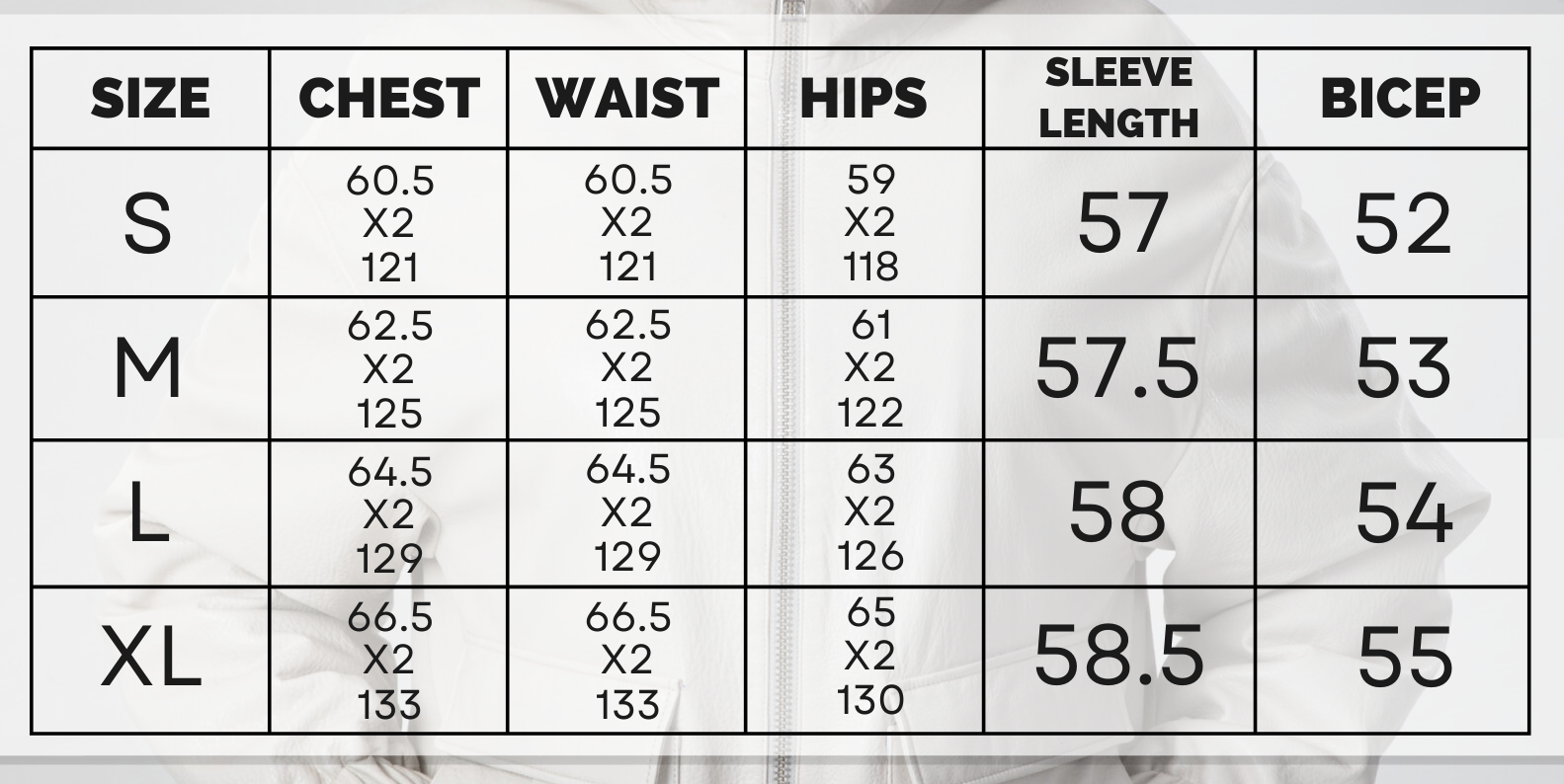 S, M, L, XL, 2XL